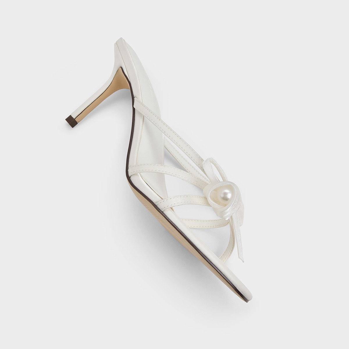 CHARLES&KEITH26夏新款CK1-60280506蝴蝶结缎面尖头高跟凉鞋婚鞋