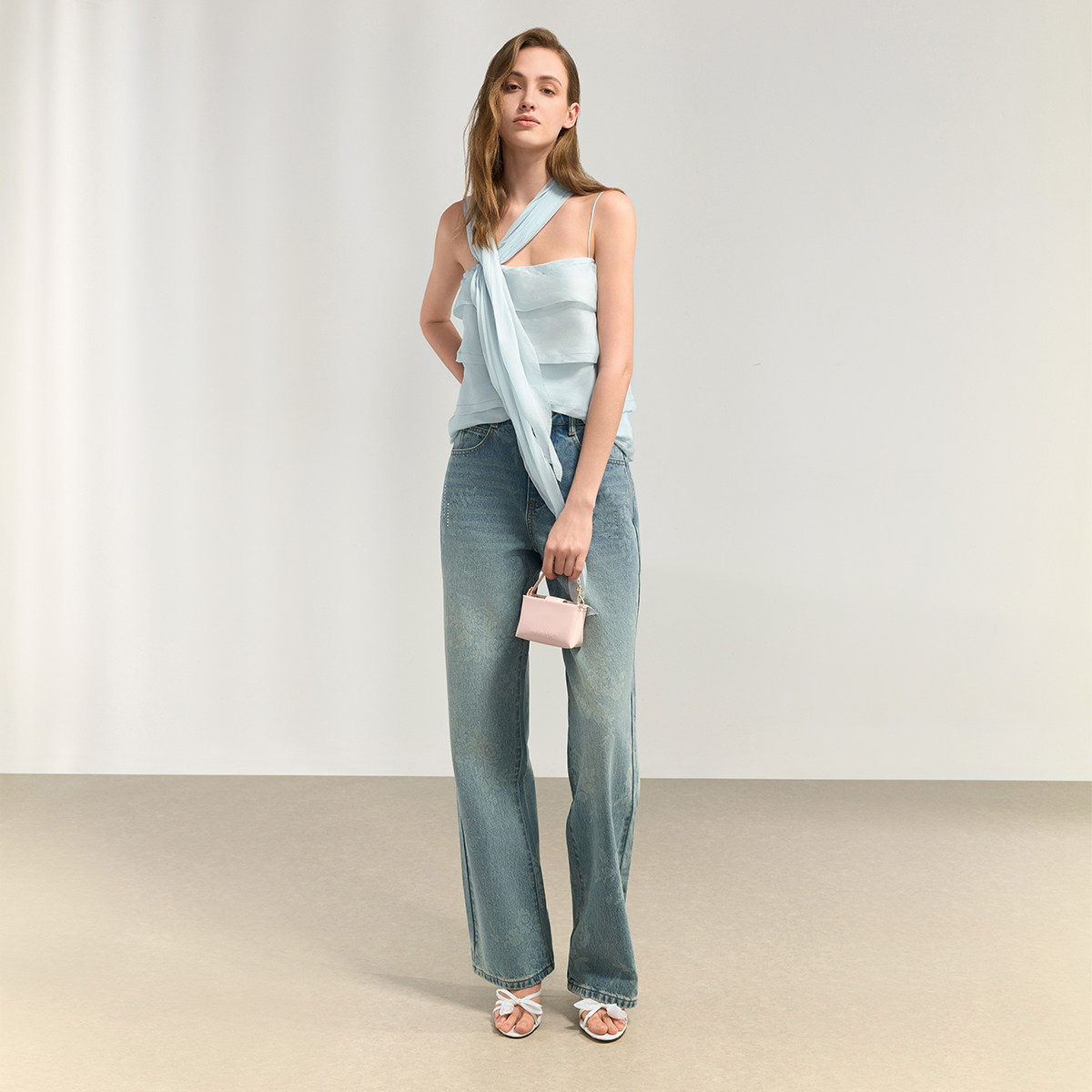 天猫CHARLES&KEITH26夏新款CK1-60361616花朵蝴蝶结细带高跟鞋凉拖鞋