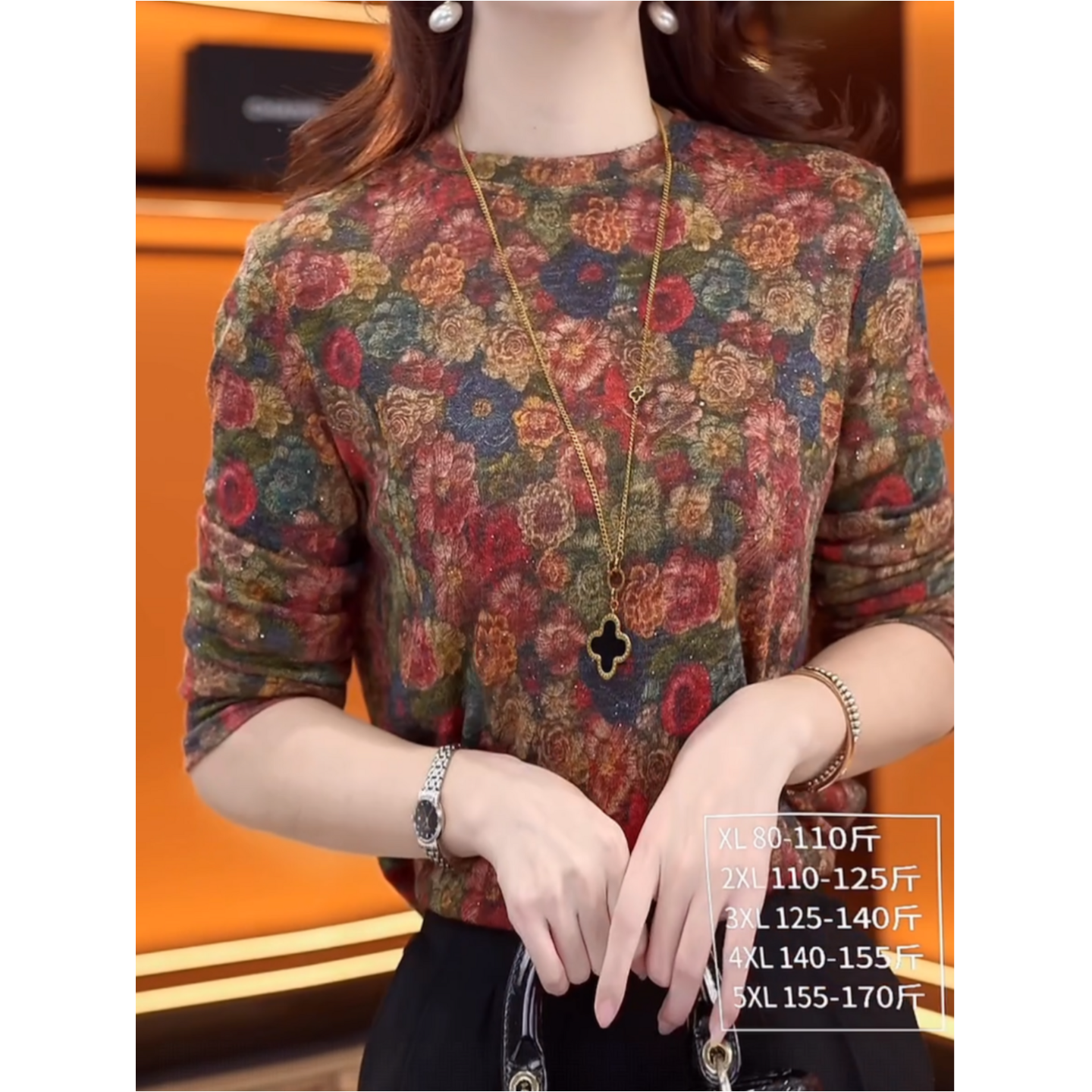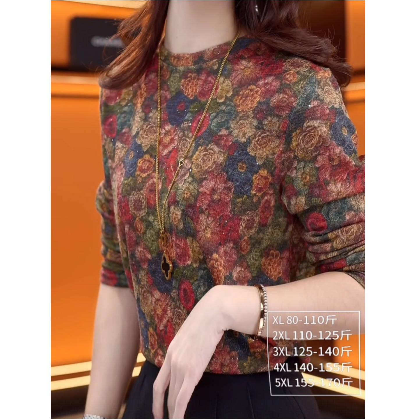 淘宝洋气德绒打底衫女长袖t恤春秋冬季新款Z印花保暖内搭上衣妈妈小衫