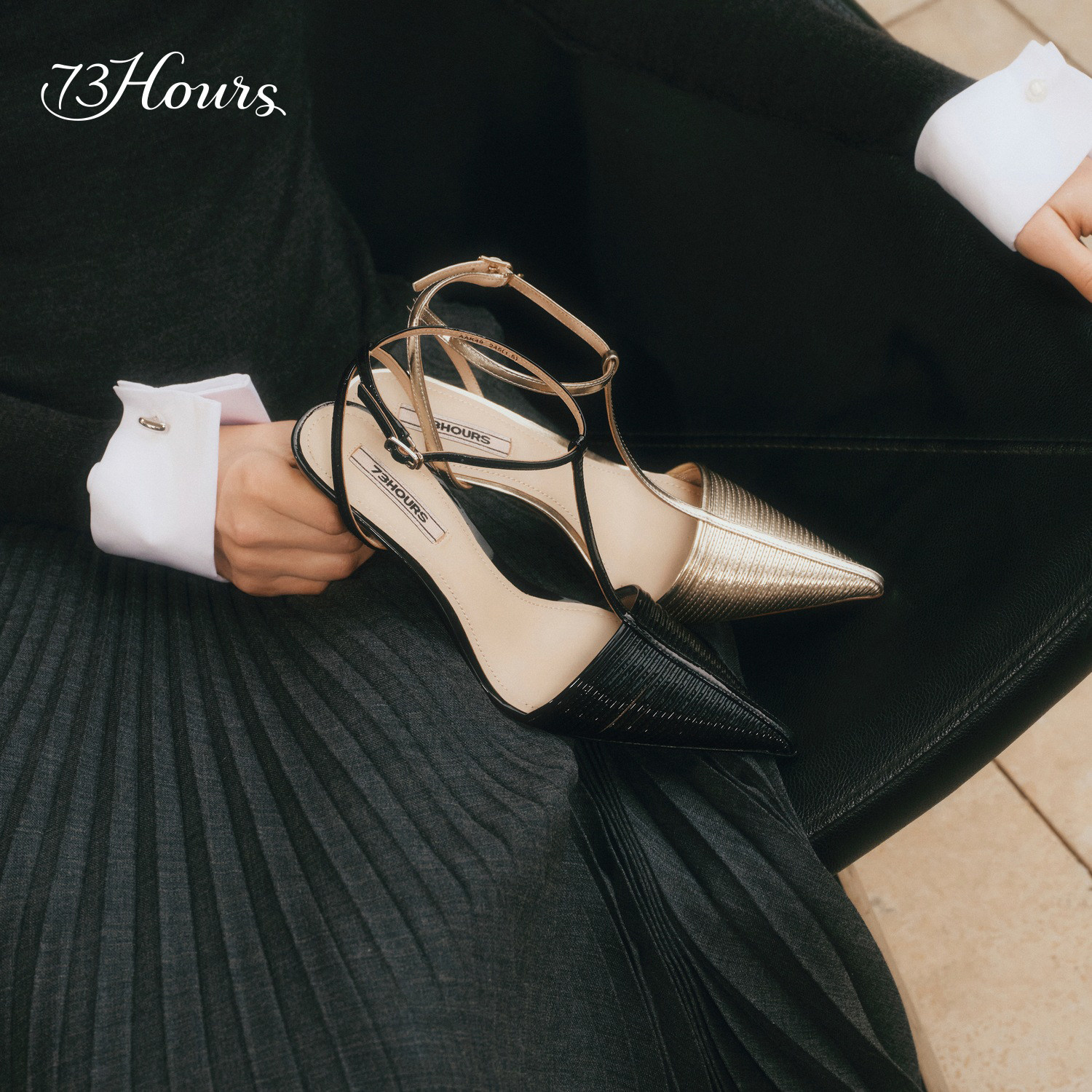 天猫【闫妮同款】73hours女鞋本能吸引26春新款尖头高跟后空包头凉鞋