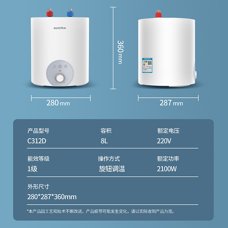 澳柯玛小厨宝一级能效电热水器热水宝储水是一款高效、便捷的热水设备。它采用一级能效技术,节能环保,能够快速加热,提供充足的热水,满足您的日常需求。小厨宝设计精巧,占用空间小,安装方便,适用于家庭、酒店、旅馆等多种场所。其储水功能能够让您随时享受热水的舒适,无需等待。高品质的材料和制造工艺,保证了其安全和耐用性。总之,澳柯玛小厨宝是一款值得信赖的热水设备,为您的生活带来便捷和舒适。