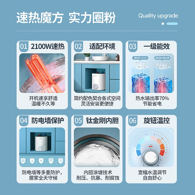 天猫澳柯玛小厨宝一级能效电热水器热水宝储水