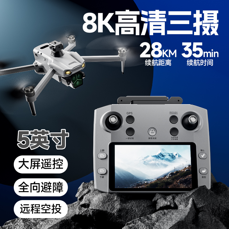 天猫全向避障旗舰大屏遥控空投无人机28000米长续航高端专业航拍器8k高清EIS防抖遥控飞机入门2025新款GPS返航