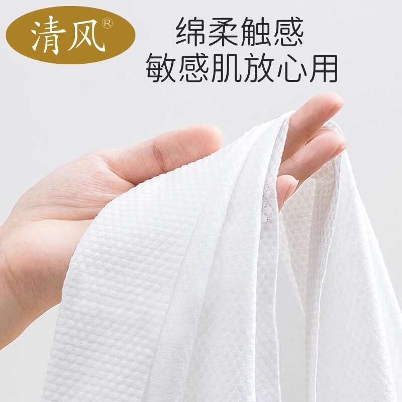 清风壁挂式家用一次性洗脸巾加大加厚干湿两用擦脸巾洁面巾500克