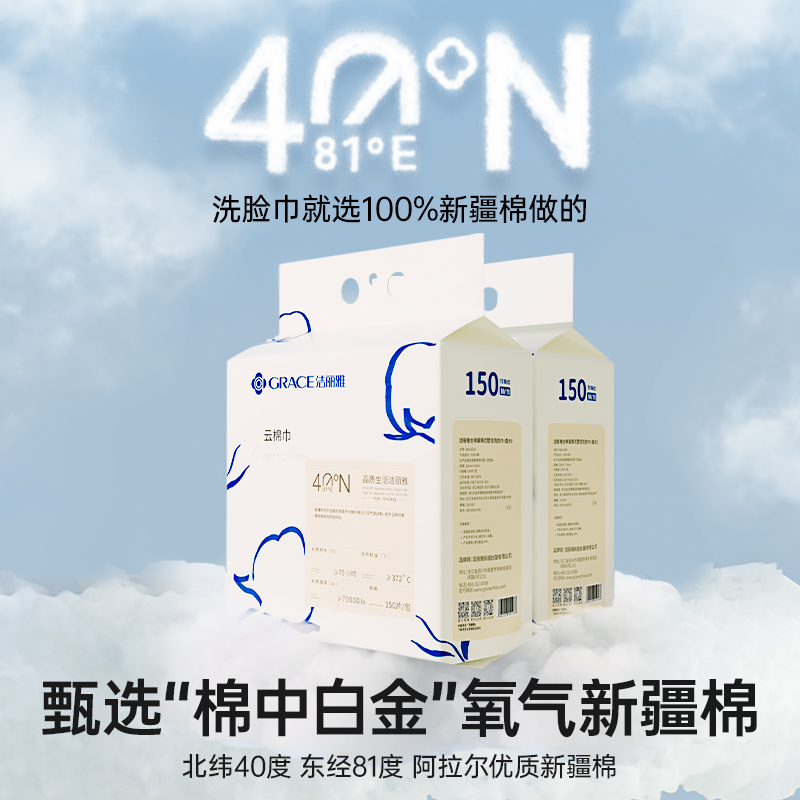 天猫洁丽雅一次性洗脸巾纯棉珍珠纹悬挂抽取式卸妆洁面进壁挂式擦脸巾