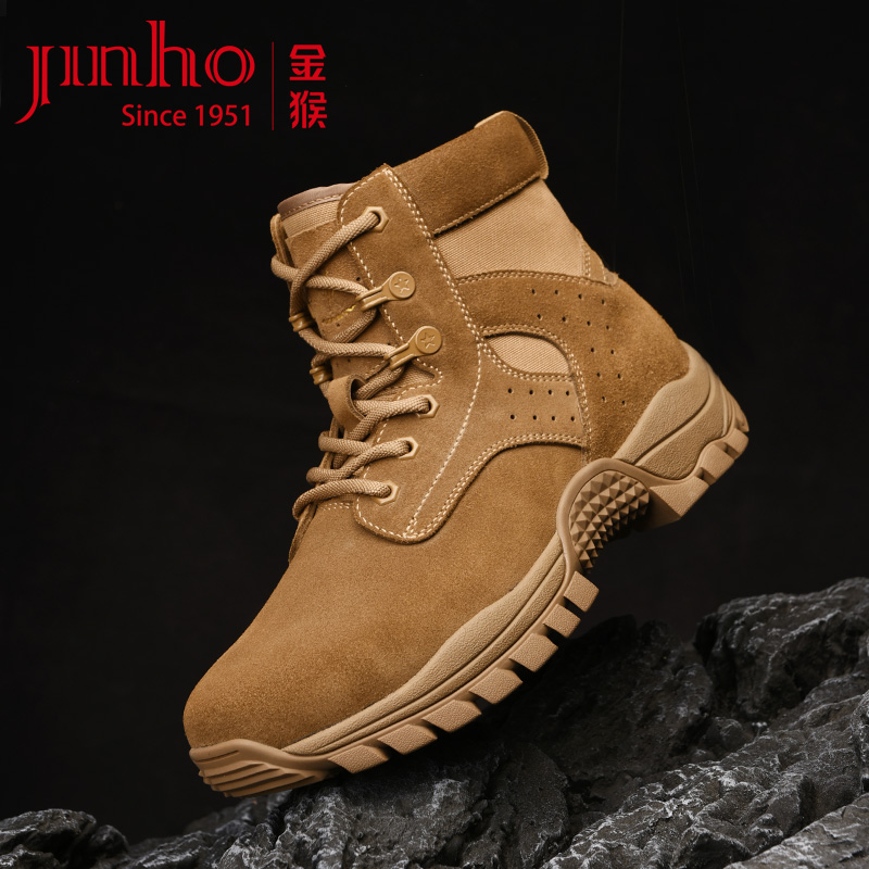 金猴官方新品作战训靴越野训练鞋,专为男士打造。这款短款靴型时尚又实用,适合登山探险和野外作业。采用防穿刺设计,坚固耐用,保护脚部安全。沙漠风格的靴面设计兼具时尚感和实战功能。该鞋具备良好的透气性和抓地性能,使穿戴者在行走时更为轻松自如。不论是沙漠、山地或野外越野环境,这款金猴男士短靴都是您最佳的选择。品质卓越,性能出众,让您在挑战中尽显英勇本色。