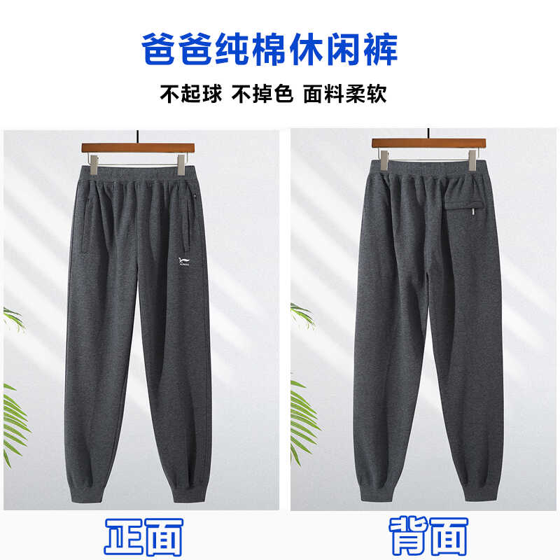 淘宝秋冬男士纯棉运动裤中老年松紧高腰长裤老年人厚款休闲束脚卫裤子