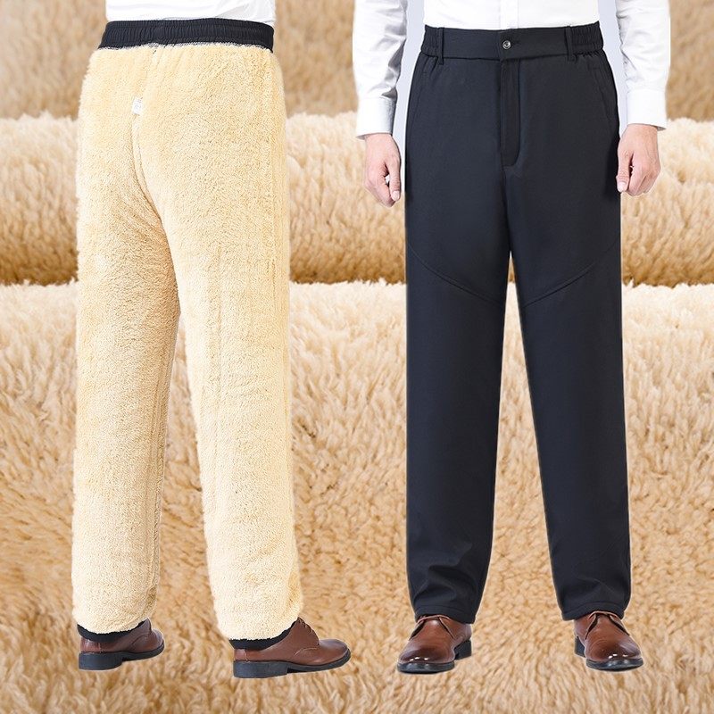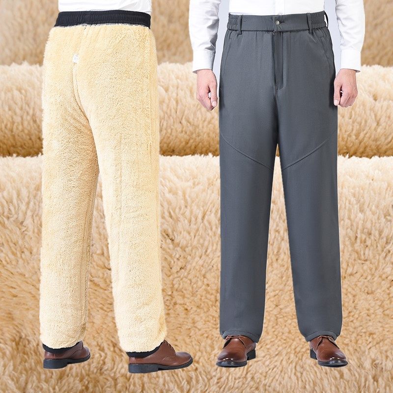 淘宝羊羔绒加厚棉裤男冬季加绒直筒裤外穿保暖中老年休闲宽松爸爸高腰