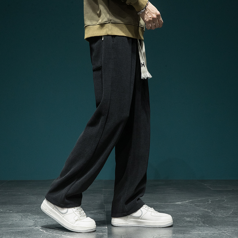 马登工装美式复古针织垂感华夫格卫裤肌理感宽松直筒休闲裤子男秋