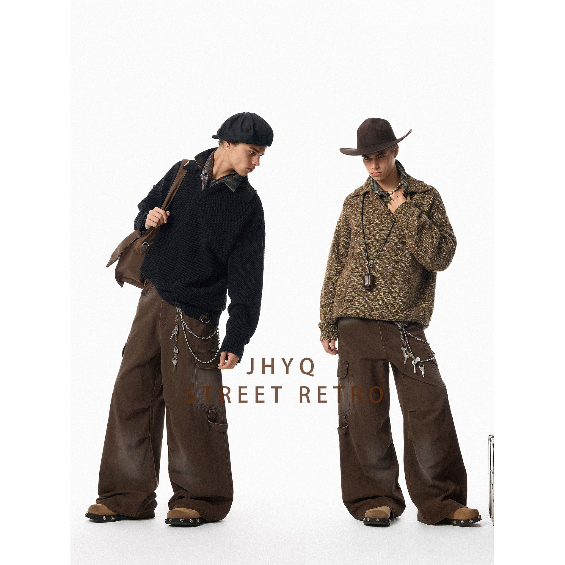 马登工装美式复古针织垂感华夫格卫裤肌理感宽松直筒休闲裤子男秋
