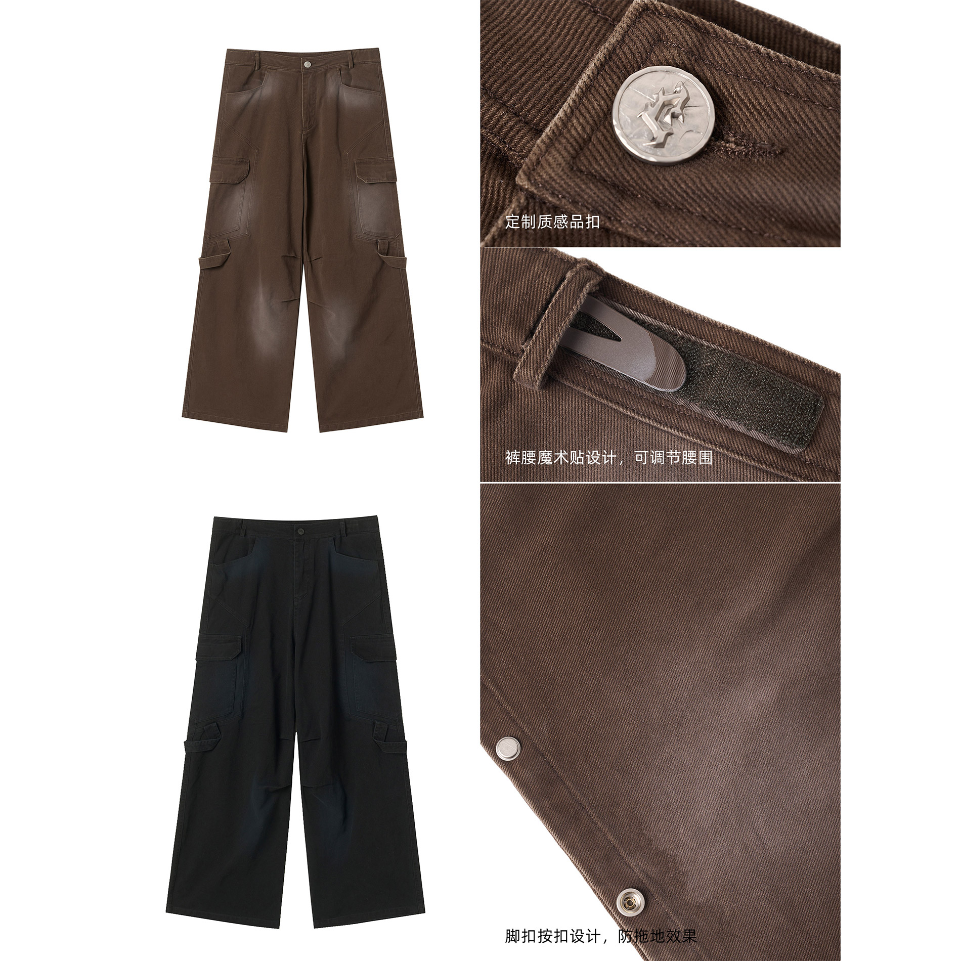 淘灯芯绒裤子男女潮牌帅气秋季卫裤港风宽松直筒长裤垂感百搭休闲裤