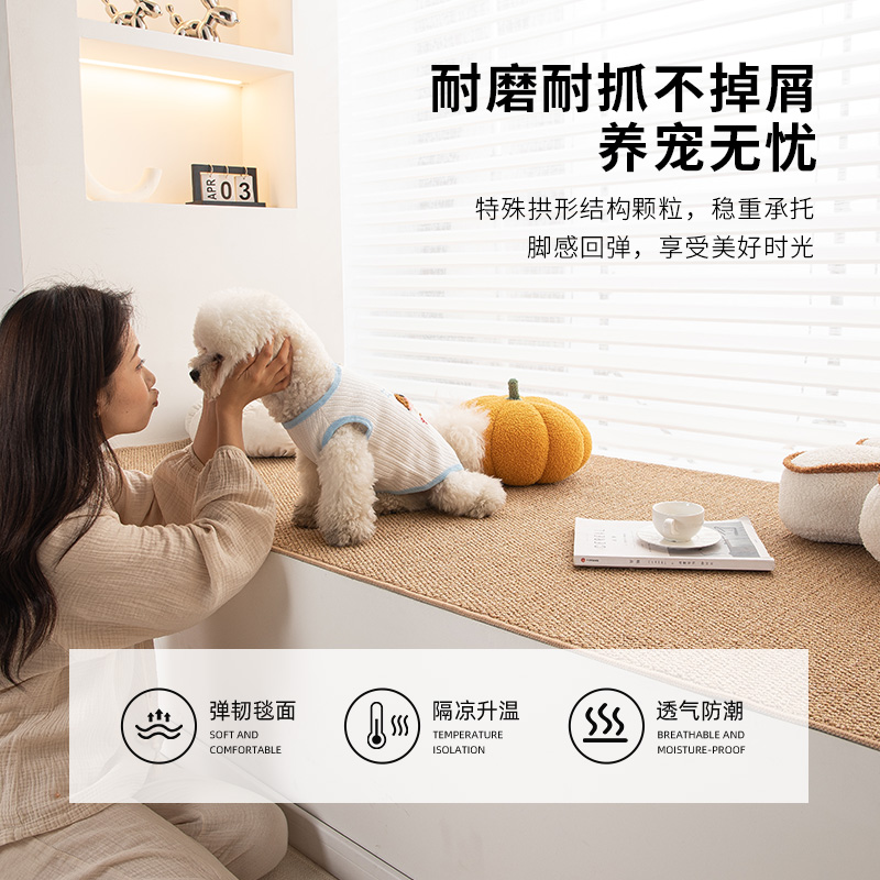 商品介绍:这款仿剑麻飘窗垫是2023年新款定制,适用于四季通用的主卧阳台和榻榻米。它采用高品质材料制成,具有防滑软垫设计,为您的安全保驾护航。飘窗垫独特的纹理和色彩赋予家居时尚感和优雅气质。可定制尺寸,完美适应各种飘窗、窗台等空间。无论是为阳台增添温馨氛围,还是提升卧室的舒适感,这款飘窗垫都是您理想的选择。优质实用,增加家居品味的同时,为您带来愉悦的休闲体验。
