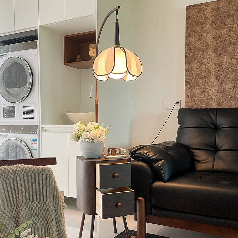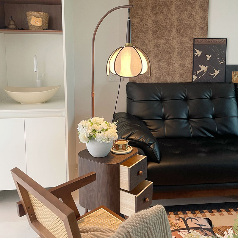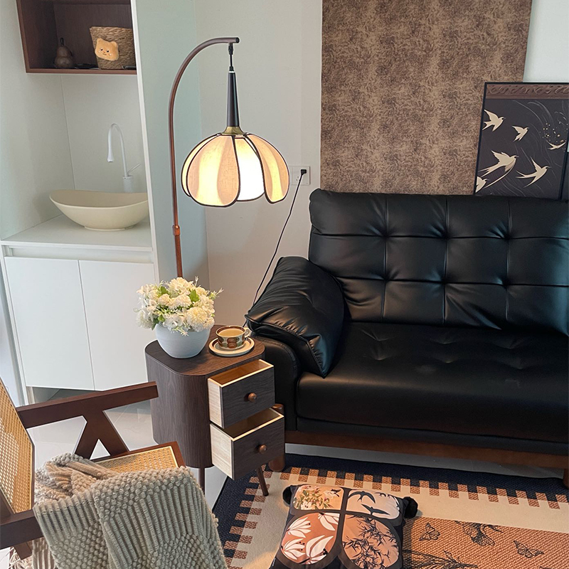 藤编落地灯客厅沙发法式中古奶油风复古日式侘寂风钓鱼灯台灯