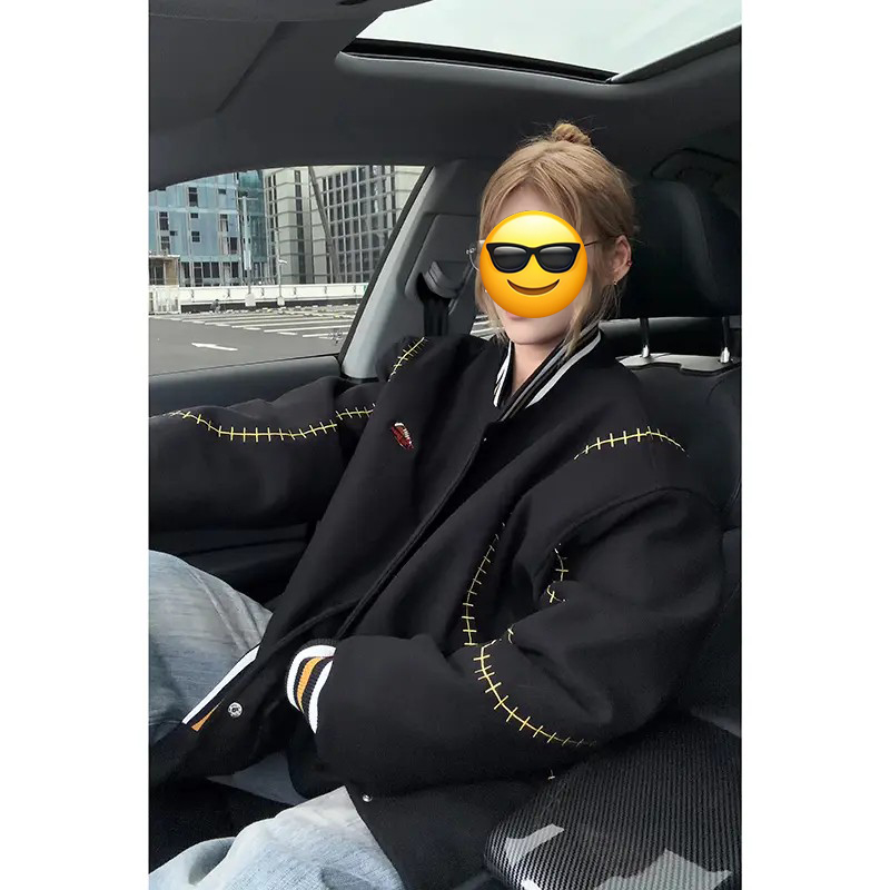 悟空有货美式潮牌刺绣字母棒球服外套男女复古学院风情侣休闲夹克