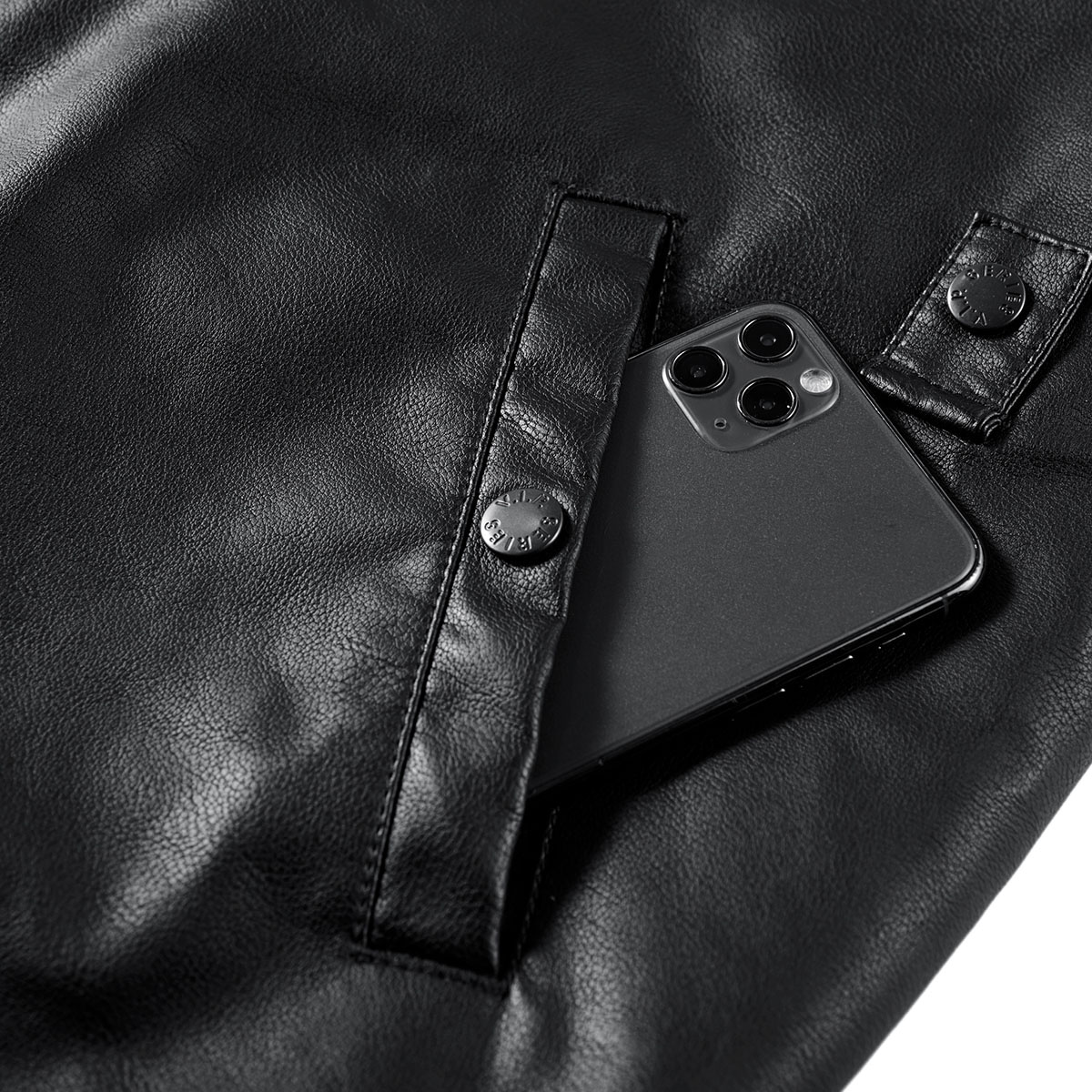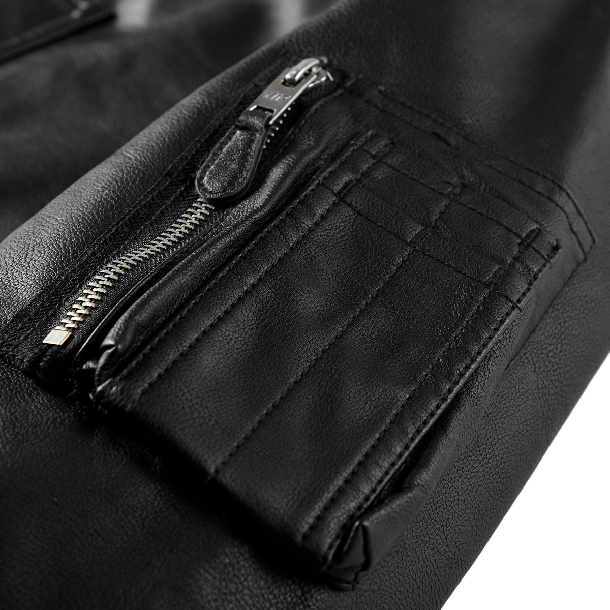 春秋PU皮连帽假两件棒球服外套男美式复古bomber宽松飞行夹克上衣