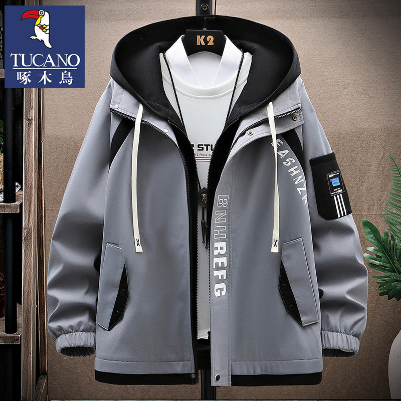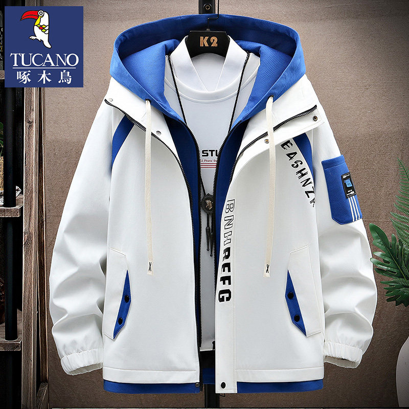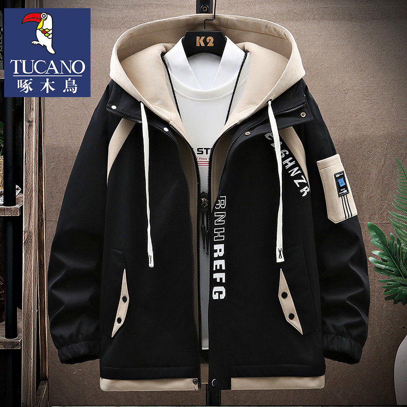 淘宝啄木鸟男士冬季加绒加厚假两件夹克青少年运动百搭外套学生棒球服