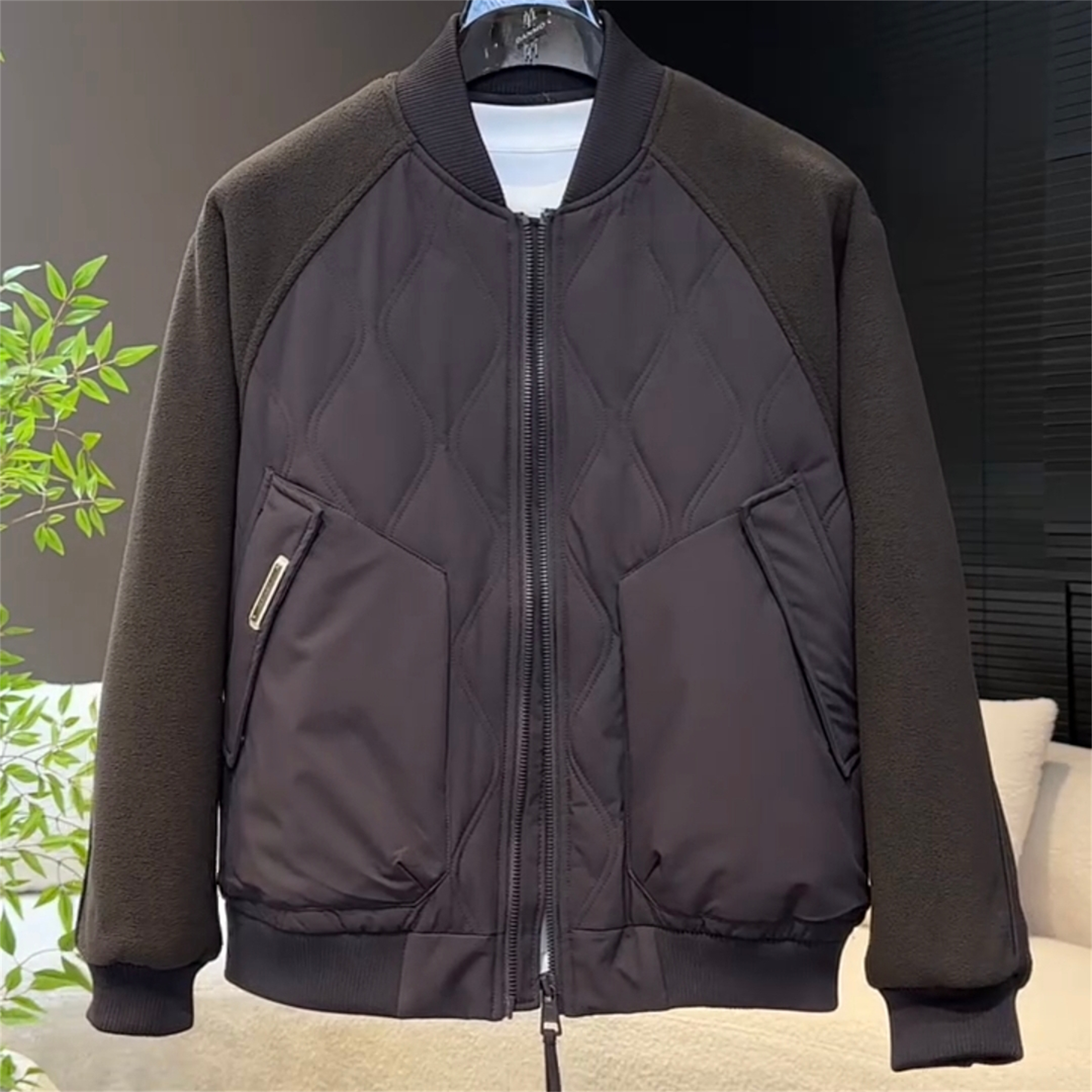 美拉德棕色立领羽绒棉服男冬季加厚保暖工装外套高级感短款棒球服