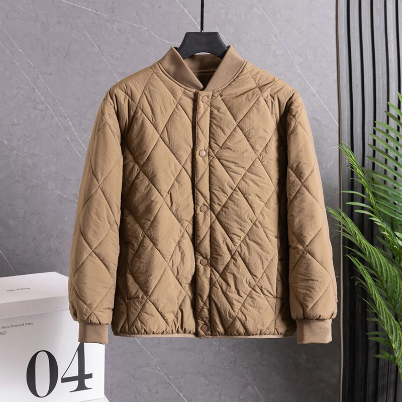 美拉德棕色立领羽绒棉服男冬季加厚保暖工装外套高级感短款棒球服