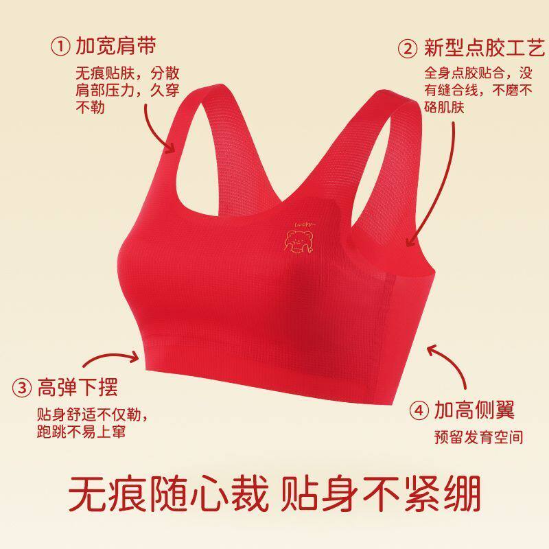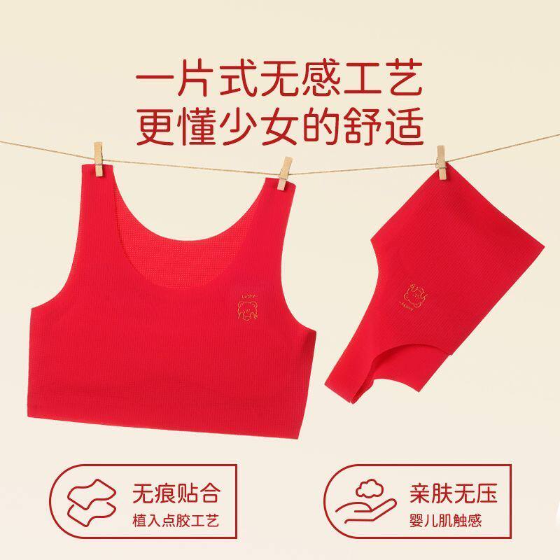 天猫本命年大红色内衣内裤套装2026马年学生女大童少女发育期背心文胸