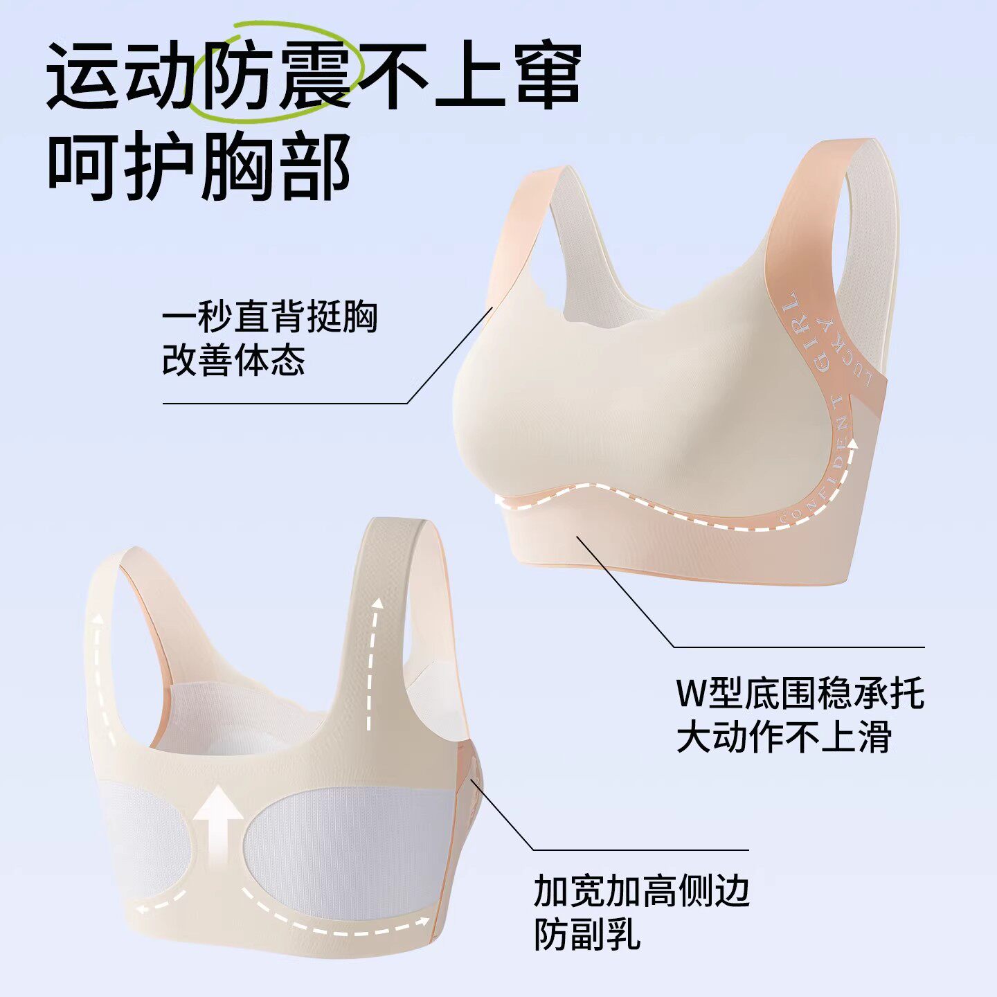 天无痕内衣女大学学生高中生少女青少年文胸运动防震美背一体背心式