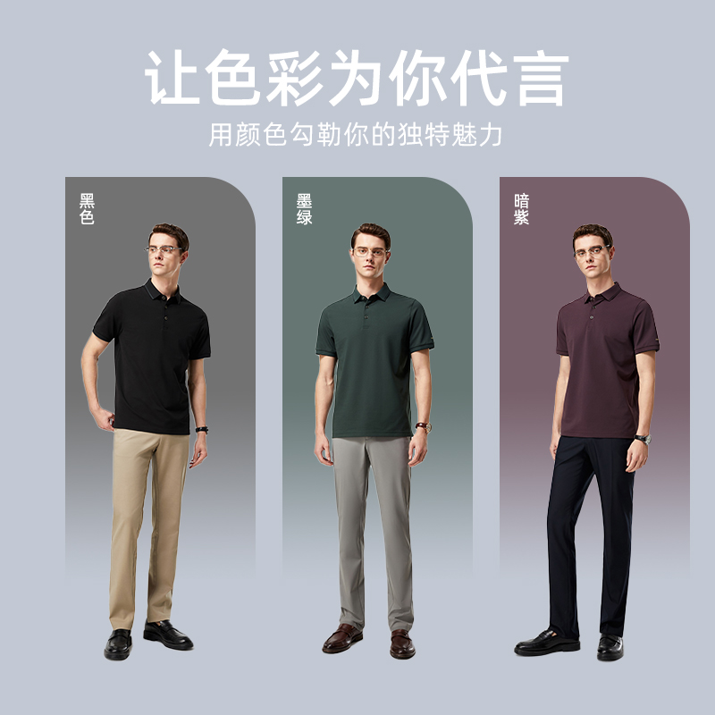 天【超高支长绒棉】霞湖世家80支polo衫男液氨丝光凉感翻领短袖377