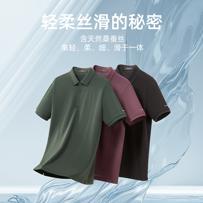 天猫【桑蚕丝+凉感】雅戈尔夏季新款男士短袖POLO衫弹力亲肤棉翻领T恤