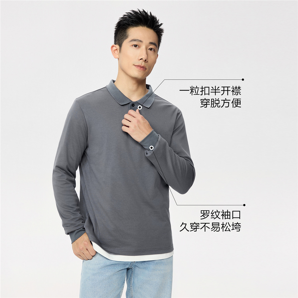 天猫佐丹奴亲肤透气Polo衫男新款纯棉通勤一粒扣长袖翻领上衣01015784