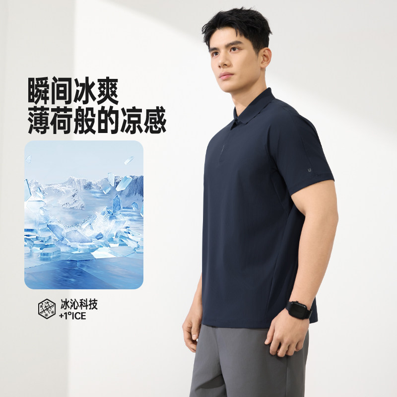 天猫361U释力POLO衫男装2026夏季新款冰丝凉感翻领T恤男士透气短袖
