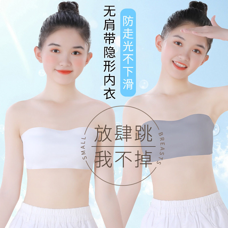 淘宝女童隐形裹胸无肩带少女学生舞蹈打底大童内衣女孩防走光文胸抹胸