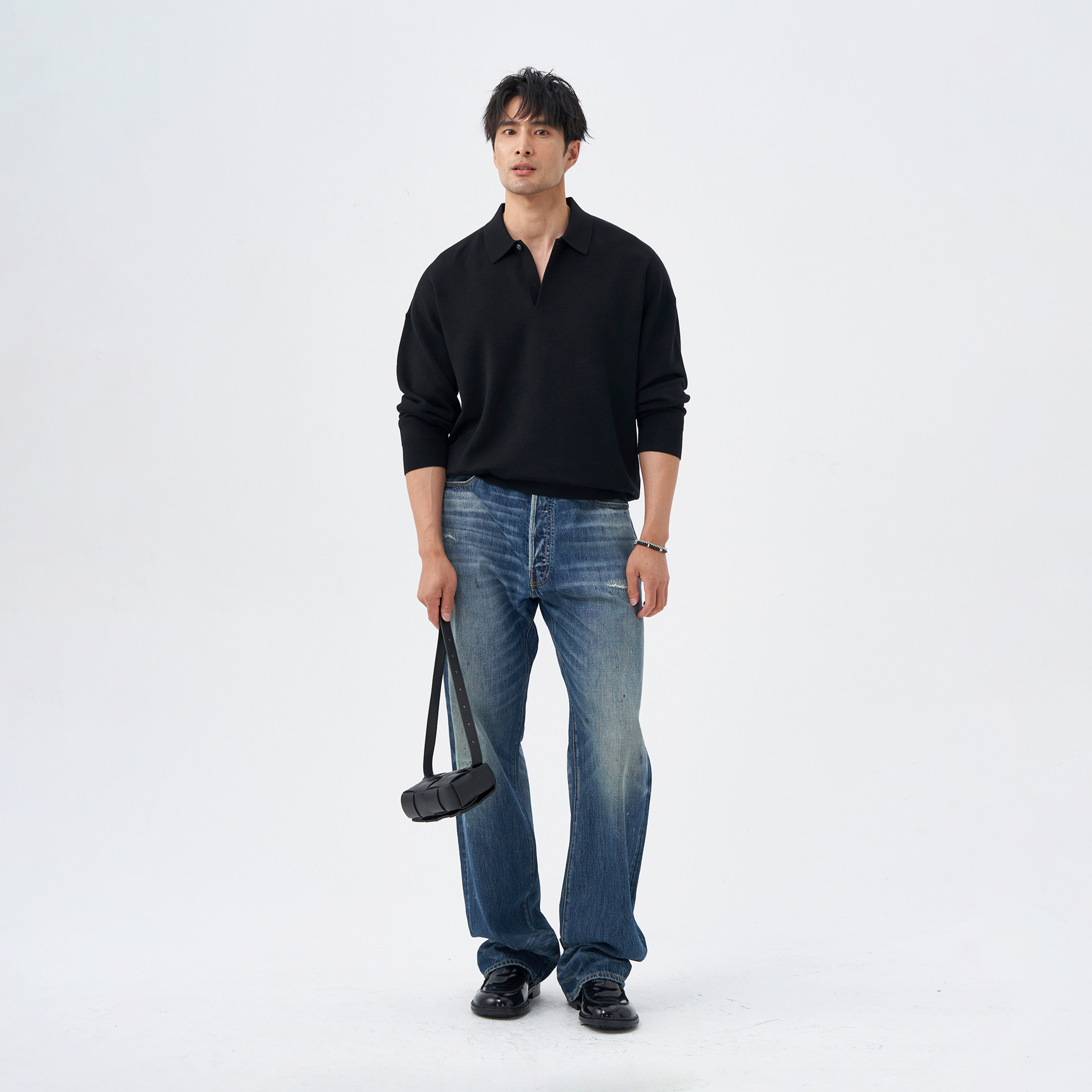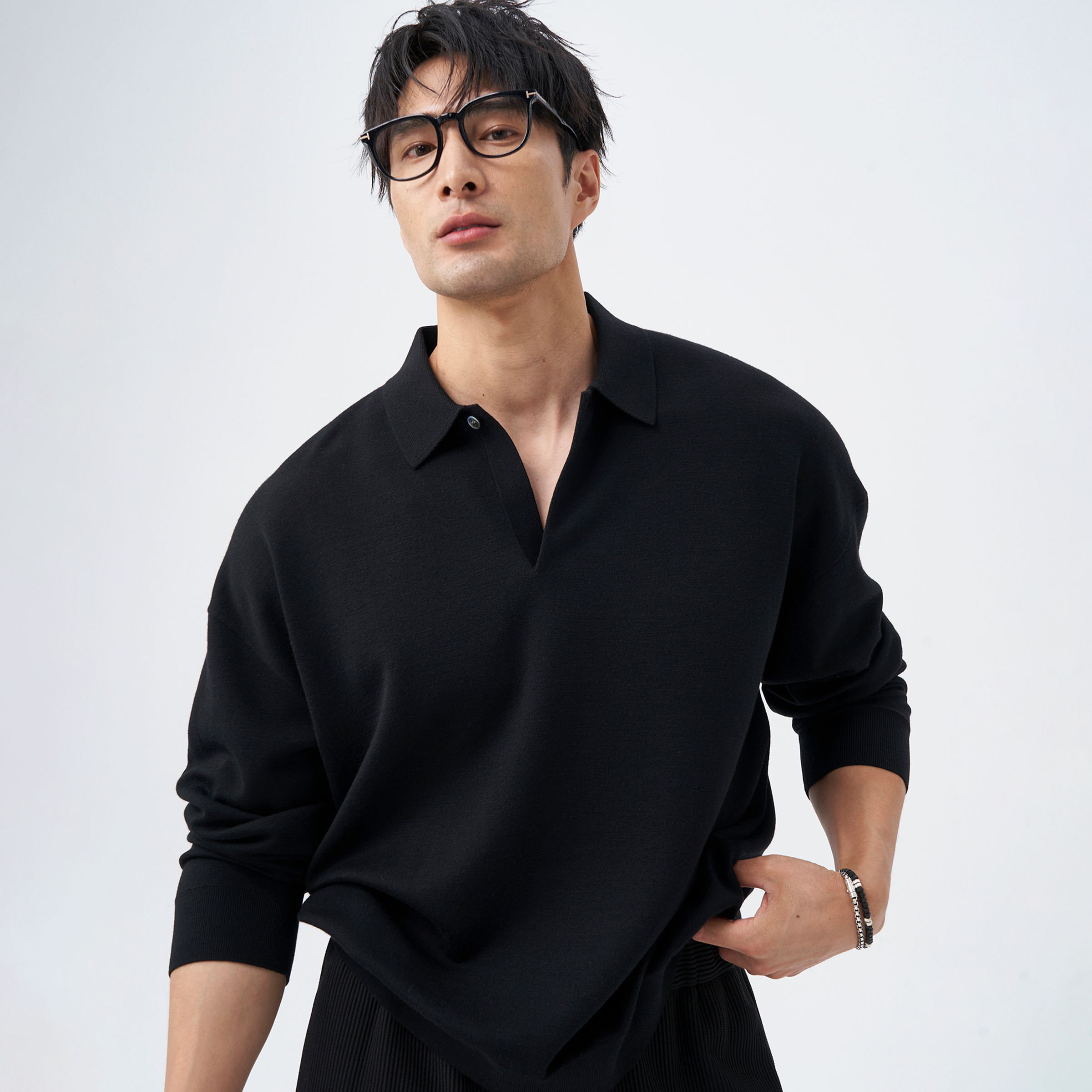 HM2025秋季新款男装标准版型羊毛Polo衫1287986