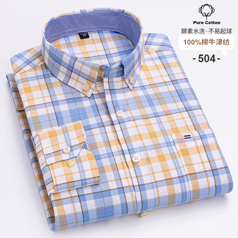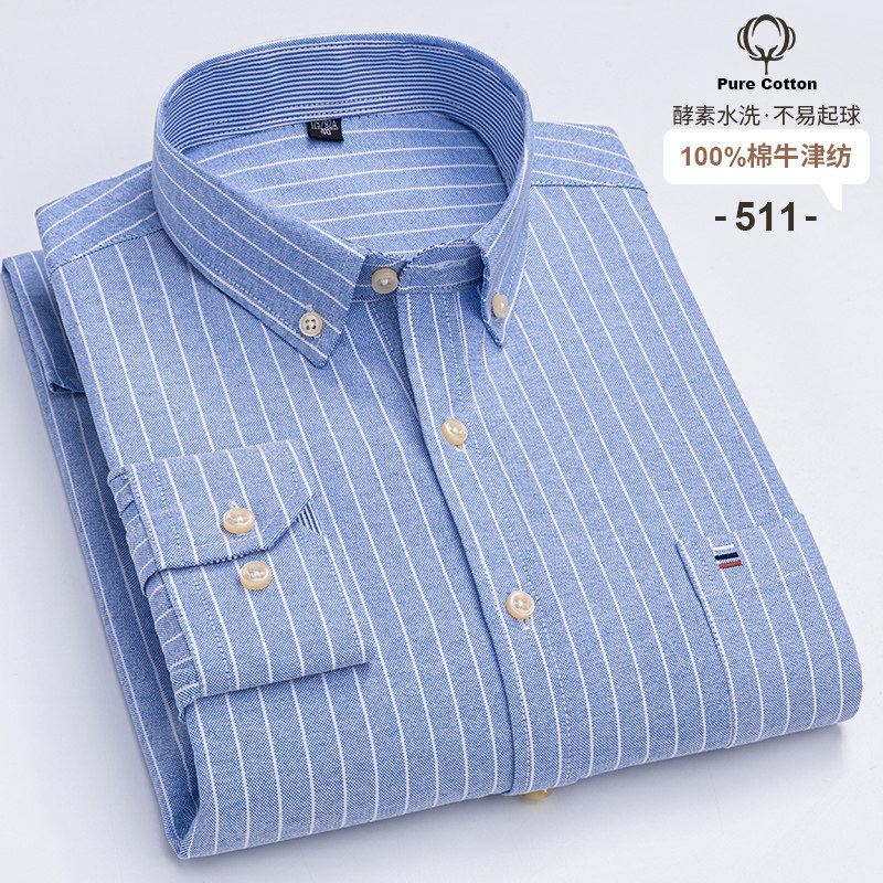 淘宝保罗100%纯棉男士条纹长袖衬衫中青年休闲全棉牛津纺大码衬衣男装