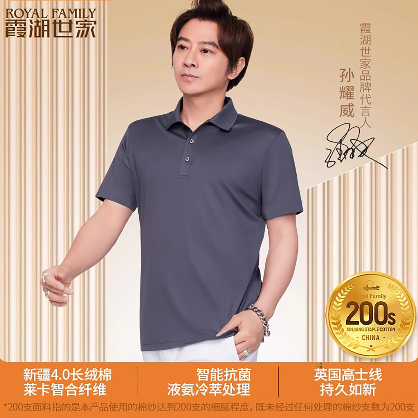 天猫霞湖世家200支凉感polo衫男夏季液氨通勤休闲翻领短袖t恤027