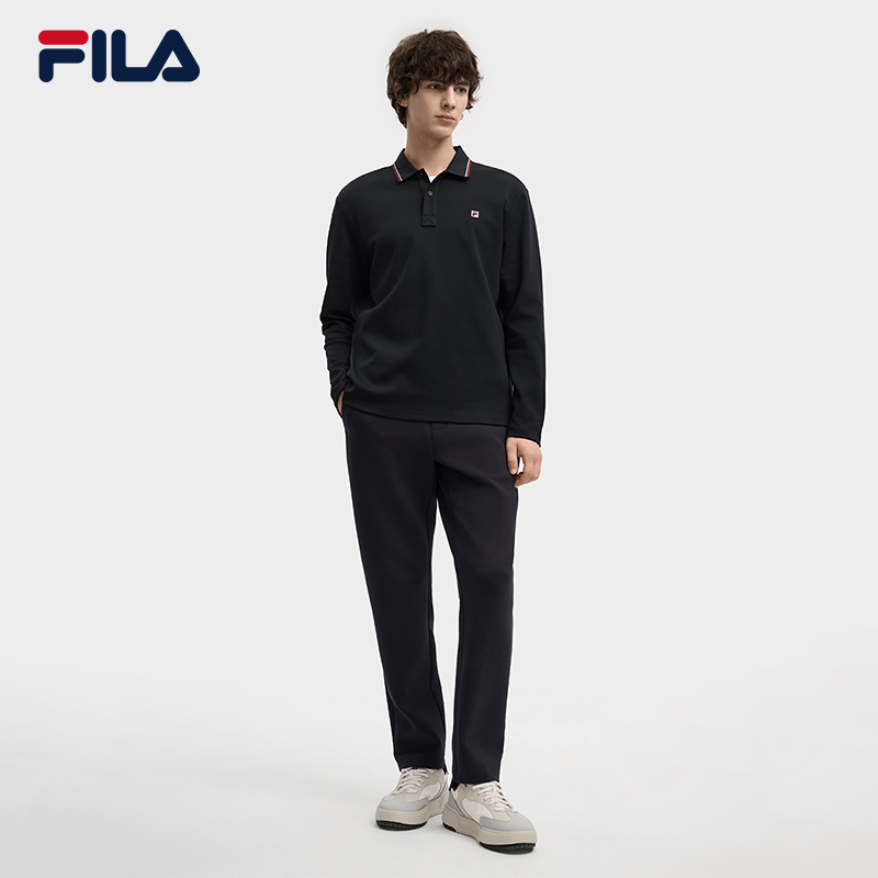 FILA 斐乐官方男子针织长袖POLO衫2024春新款基础高尔夫运动上衣