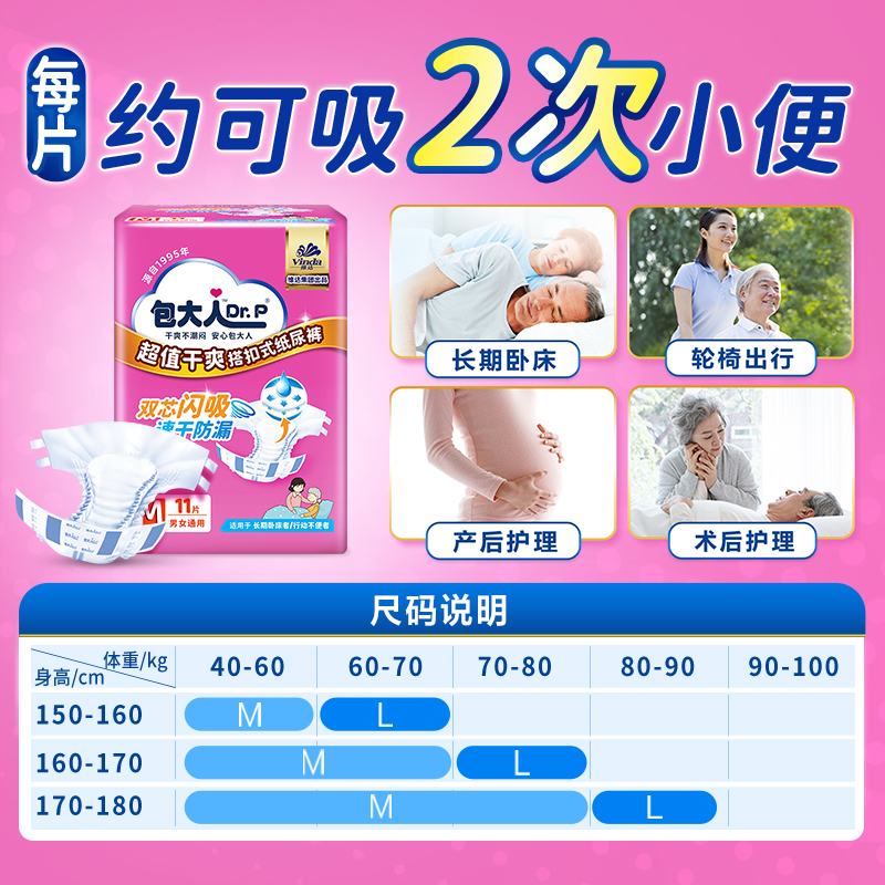 天猫Dr.P/包大人超值干爽成人纸尿裤M码老人尿不湿尿片产妇箱装
