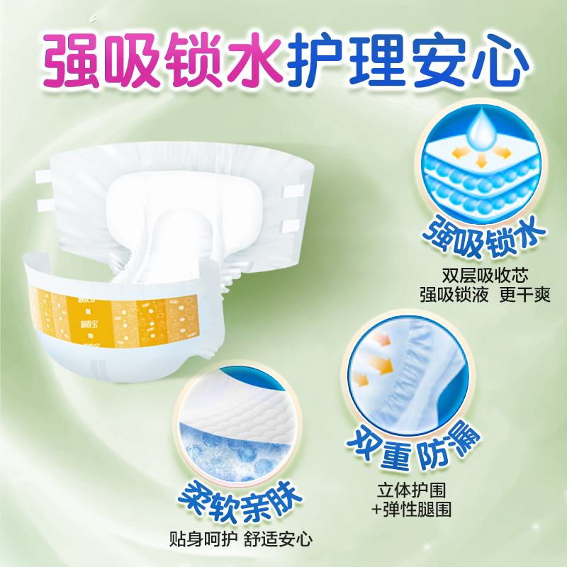 可靠吸收宝强吸锁水成人纸尿裤是专为成人尿失禁问题设计的护理产品。这款尿不湿适用于成人和老人,对于失禁情况提供有效的解决方案。产品特点包括加厚设计,提供更强的锁水能力和吸湿性,有效保持皮肤干爽。两包装量足够满足日常使用需求。这款成人纸尿裤使用方便,舒适度高,是失禁人士的贴心护理伙伴。购买本产品,让您的生活更加轻松无忧。