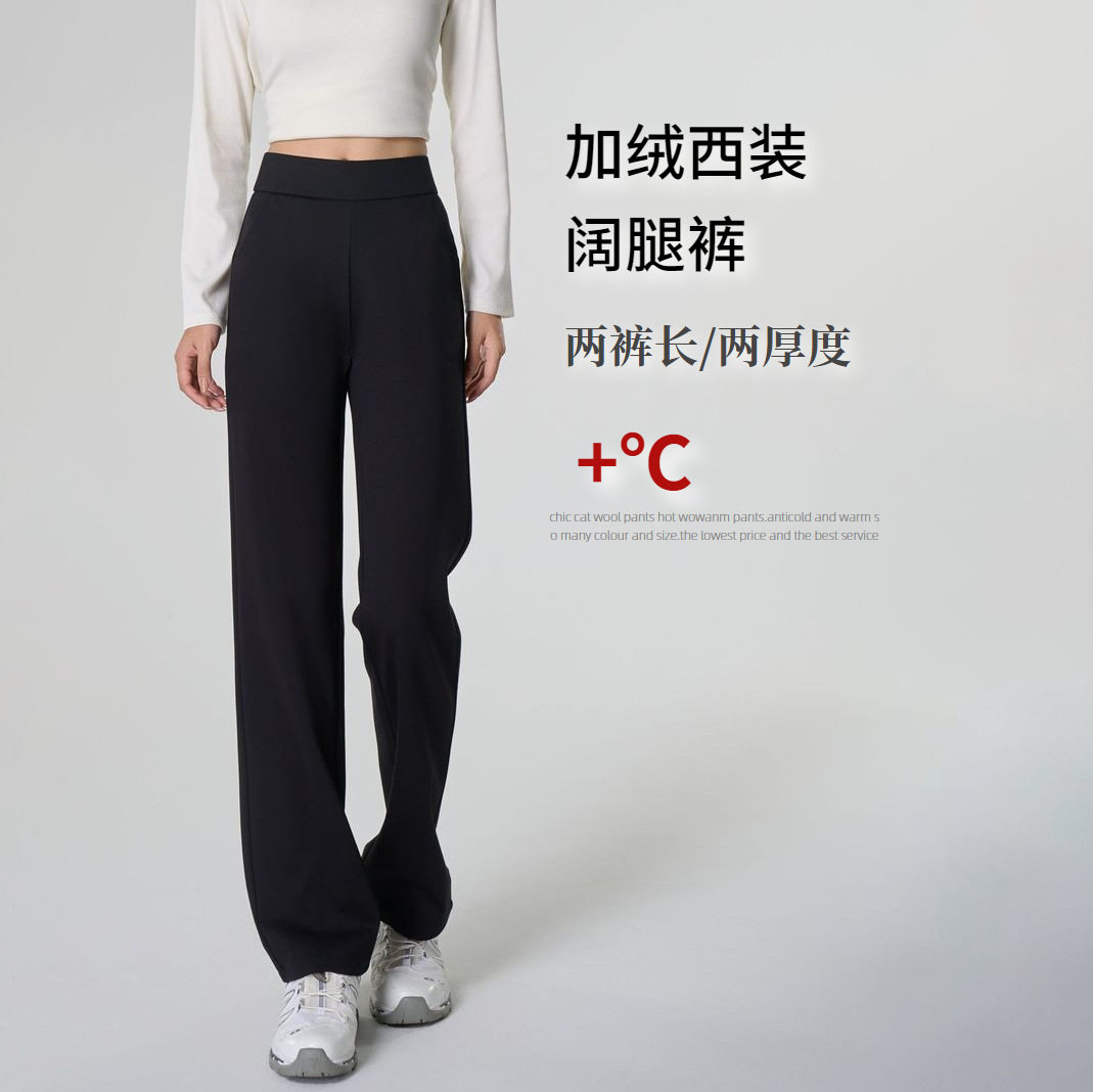 淘宝【加厚西装裤】女装冬2025新黑色高个子直筒窄版阔腿休闲西裤子女