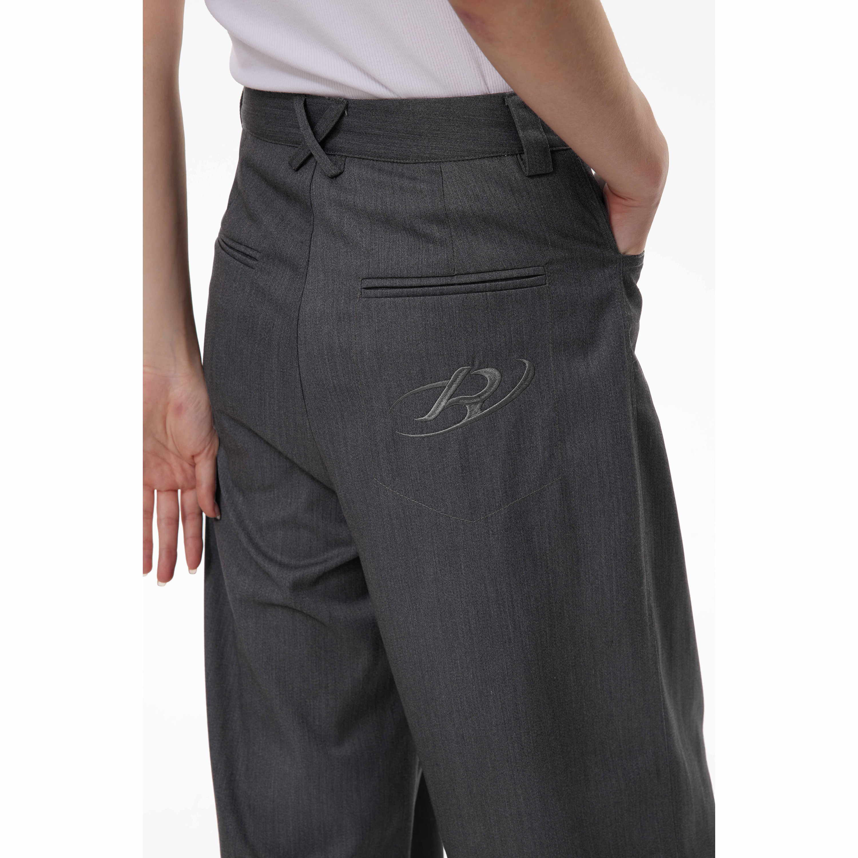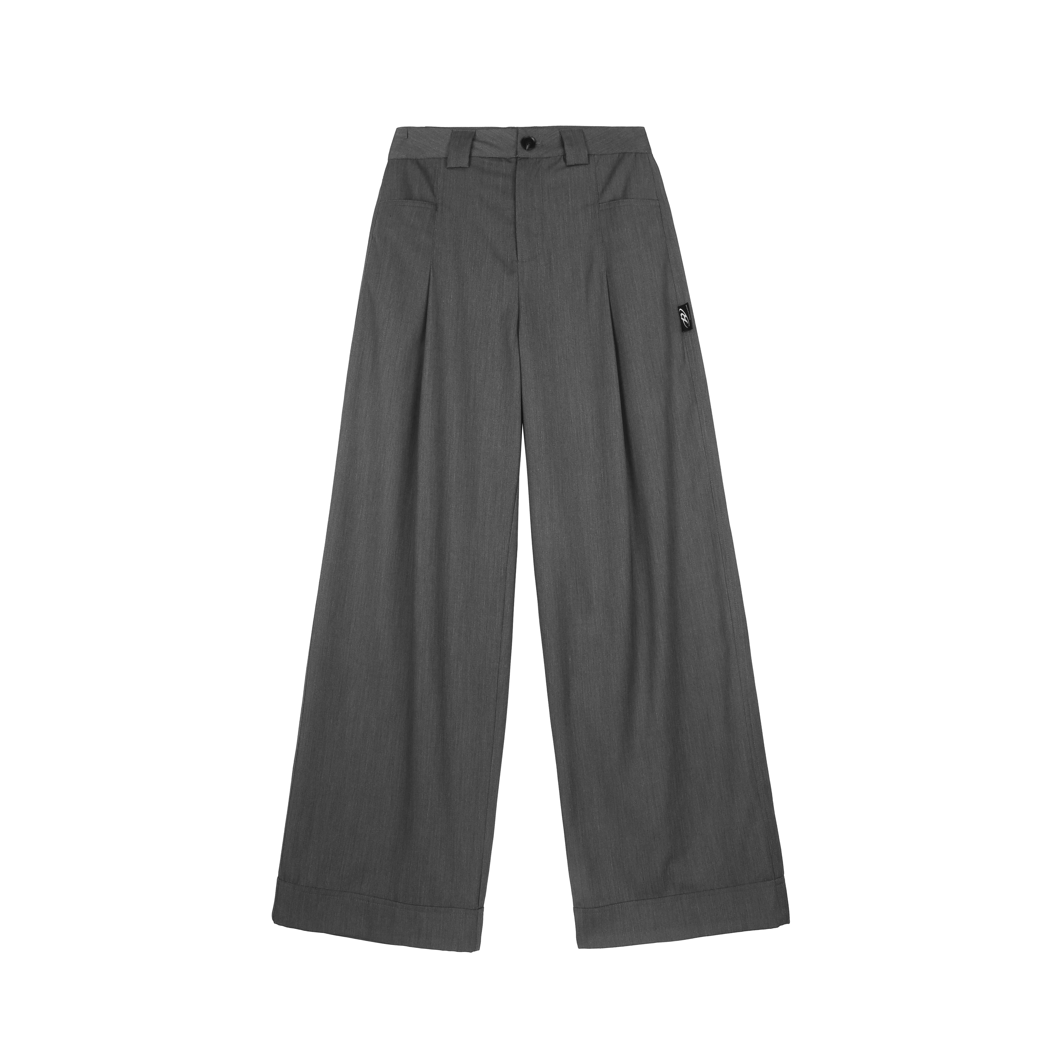 淘宝出逃赤岗西 3D绣灰色西装裤女垂感宽松直筒拖地高腰阔腿休闲西裤