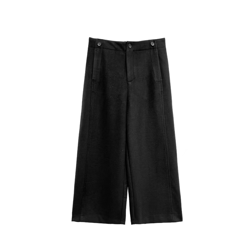 SMIIILE侧边压褶挺阔垂感西裤女宽松显瘦秋季黑色阔腿裤气质休闲