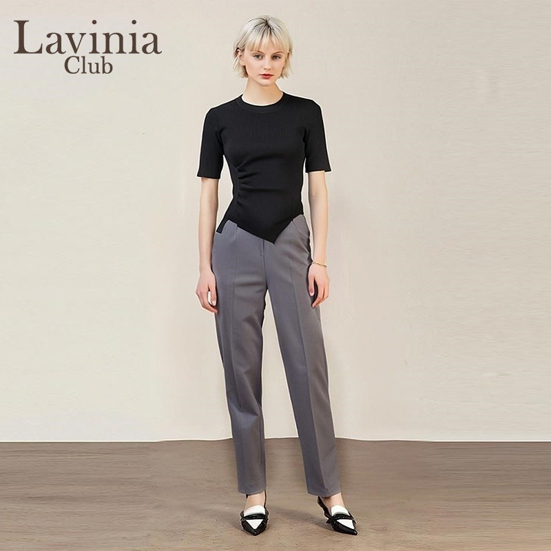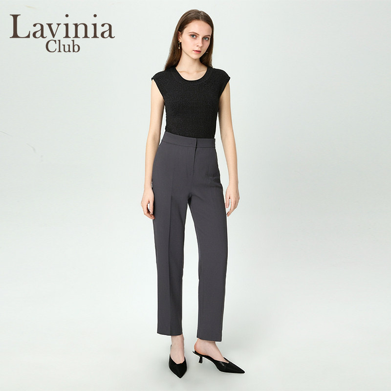 天猫Lavinia商场同款女装2025年早春品款通勤气质灰色宽松西裤B51K03