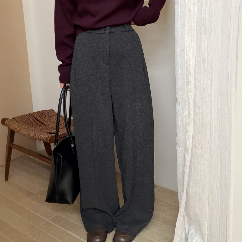 THESOONG【自在从容】花纱羊毛直筒西裤女斜纹休闲长裤显瘦遮肉