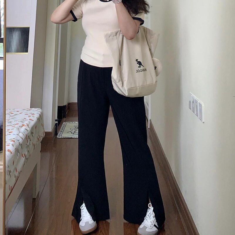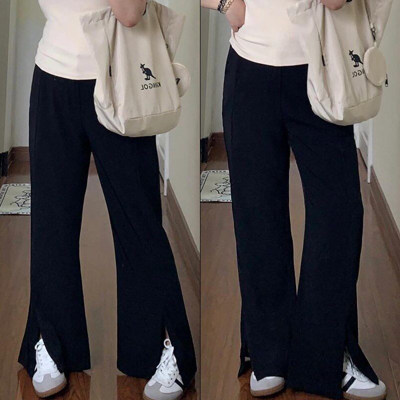 淘宝300斤胖mm大码女装黑色开叉西裤女高腰显瘦女夏季薄款微喇西装裤