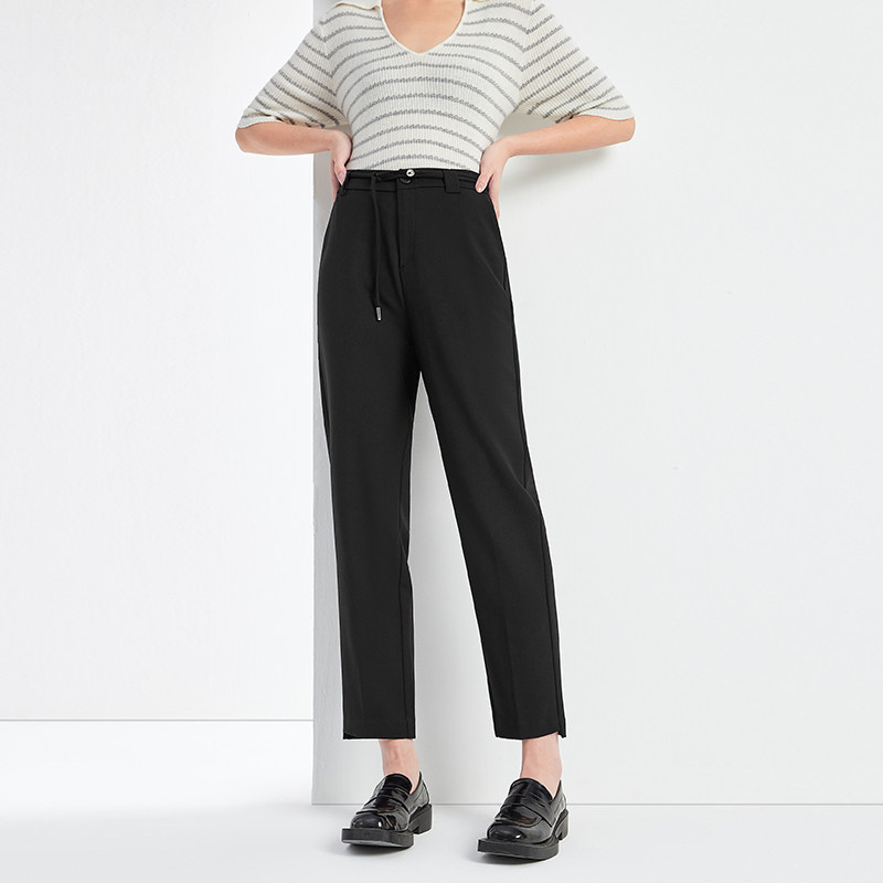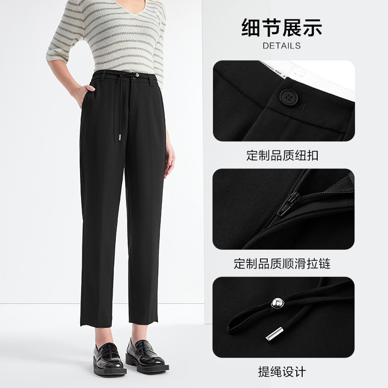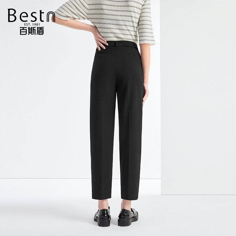 天猫百斯盾官方女装化纤西裤春秋款亲肤舒适收腰显瘦九分铅直筒裤
