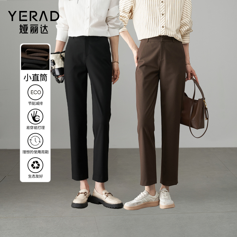 天猫娅丽达咖色加绒直筒裤女秋冬西裤2025新款女裤休闲裤子黑色西装裤