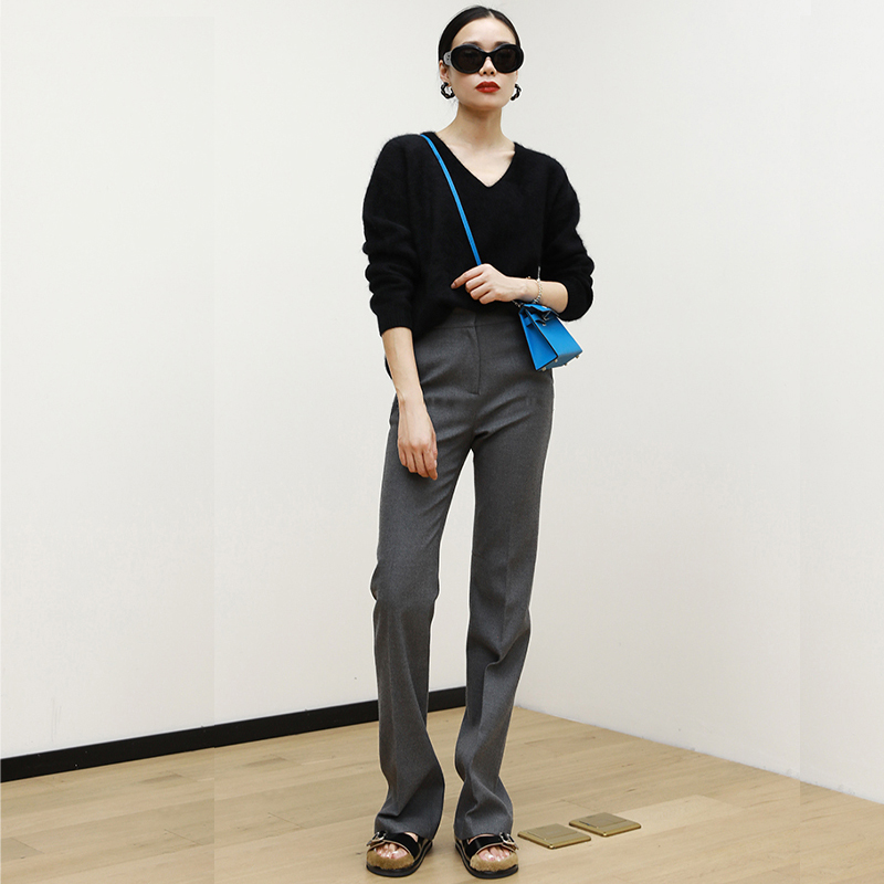 440ME女装 经典黑色羊毛混纺舒适质感直筒休闲西裤长裤FCFW0807W