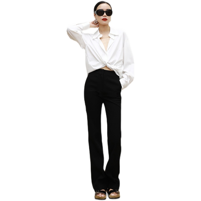 天Fabrique 经典黑色精纺绵羊毛直筒微锥西裤2025年冬新品裤子女