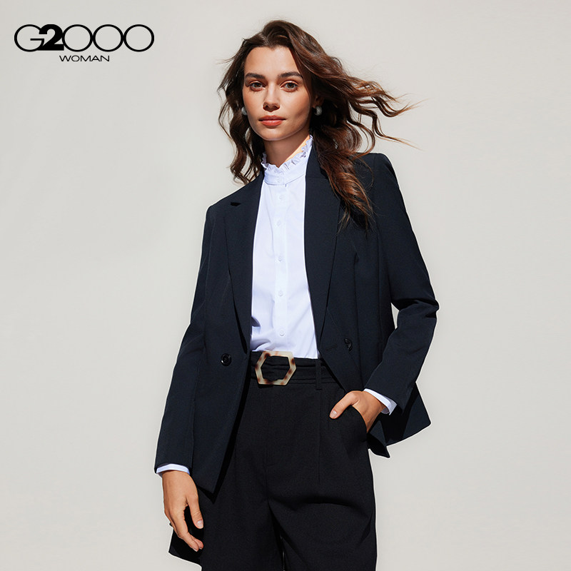 G2000女装2025型格修身剪裁西装西裤,融合多面弹面料与双排扣设计,兼顾舒适与时尚。高弹面料贴合身形,活动自如,久穿不变形;修身剪裁凸显女性干练线条,打造利落职场形象。双排扣门襟经典大气,细节精致,提升整体质感。商场同款品质,工艺考究,裤型挺括有型,搭配西装或单穿皆宜。无论是通勤、会议还是商务休闲场合,都能展现自信优雅气质。G2000以现代设计诠释职业女性魅力,是都市精英衣橱的必备单品。简约而不简单,演绎2025年职场新风尚。