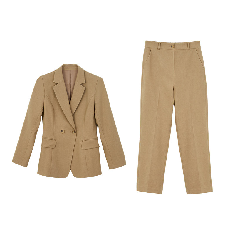 天猫Lavinia 时尚通勤气质西装套装春秋新款女装简约驼色西服西裤