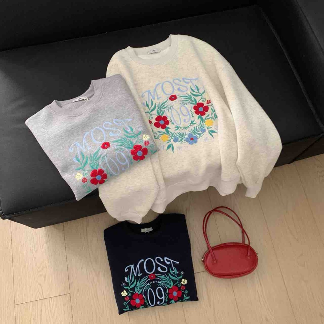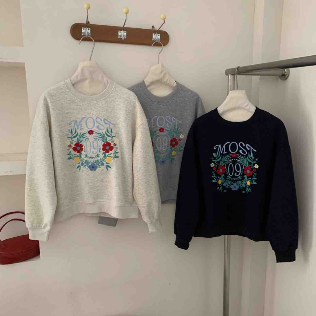 淘宝自留推荐韩国东大门秋小个子女生短款卫衣玫瑰花刺绣宽松女士上衣