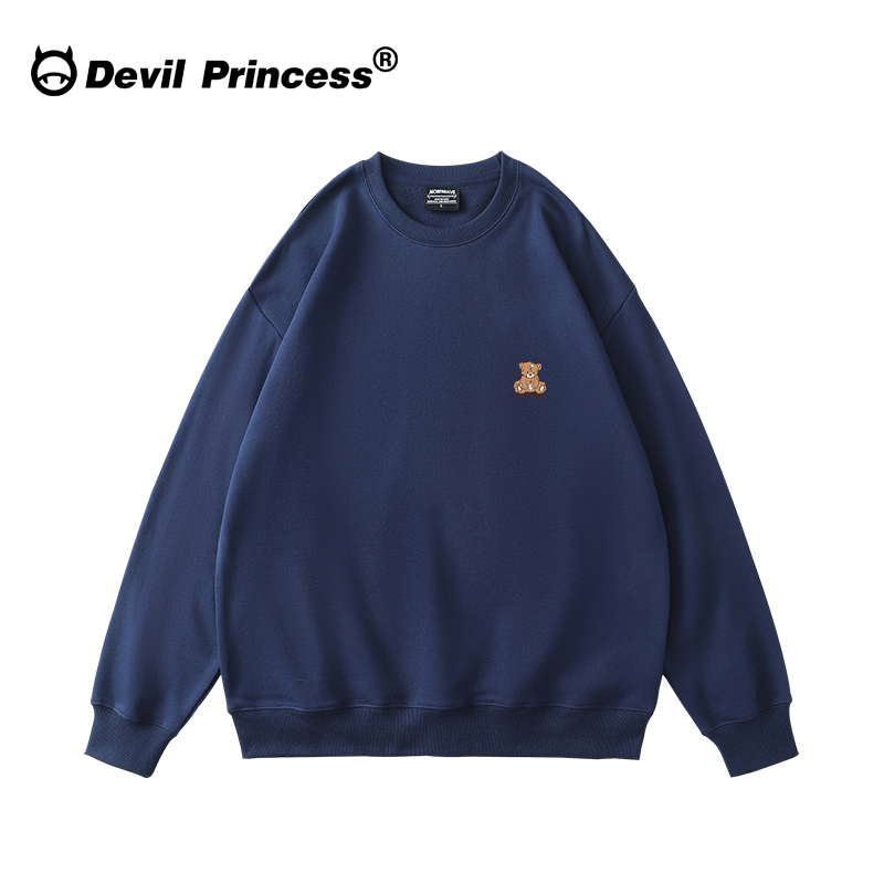 纯棉美式复古手绘狗狗无帽卫衣女冬季慵懒小众设计感加绒加厚上衣