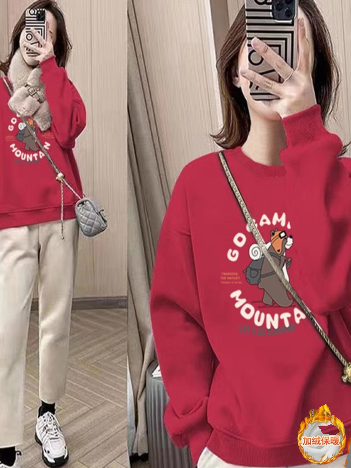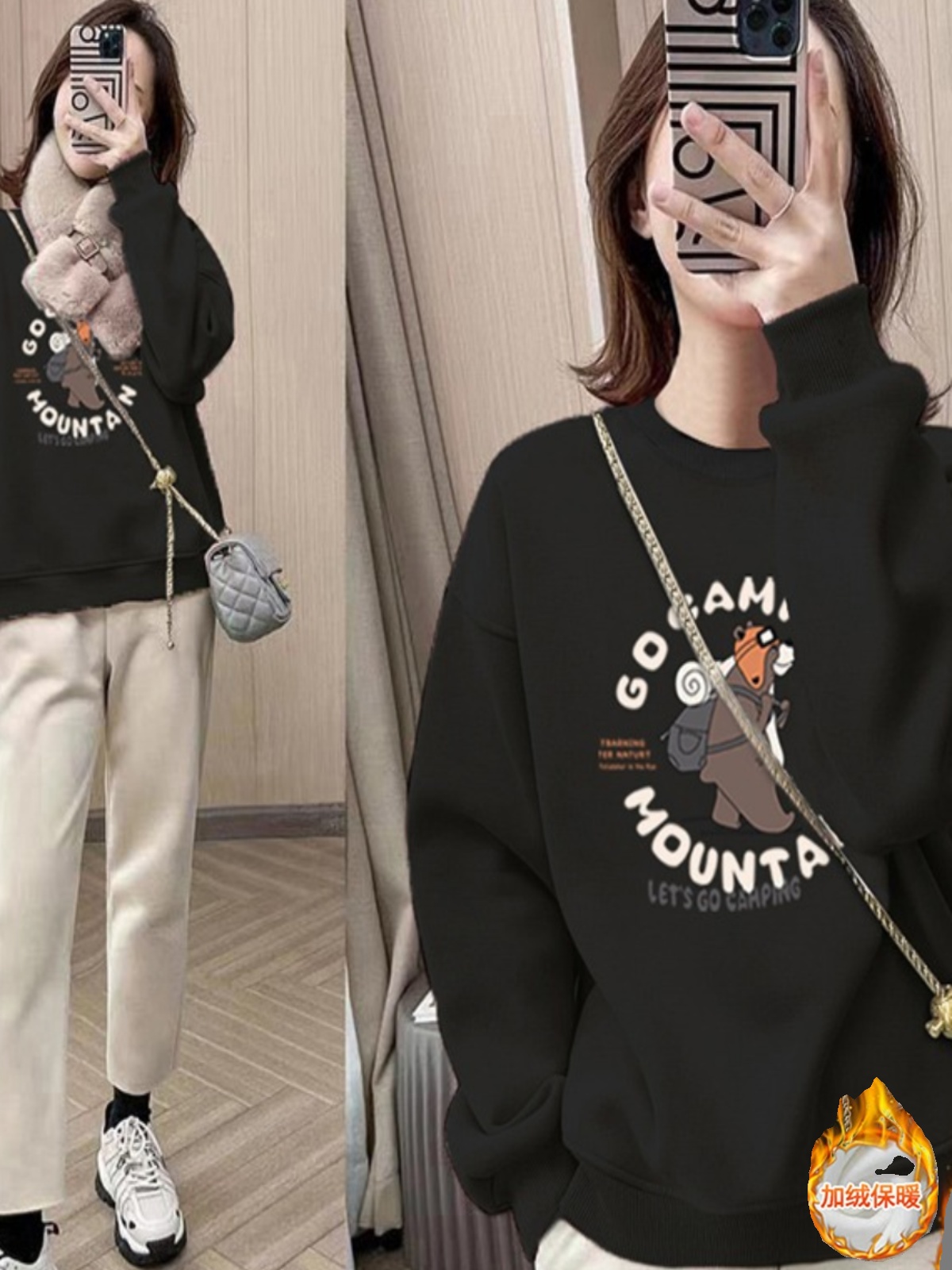 淘宝清仓大牌女装捡漏秋冬洋气长袖纯棉加绒卫衣宽松圆领加厚学生上衣